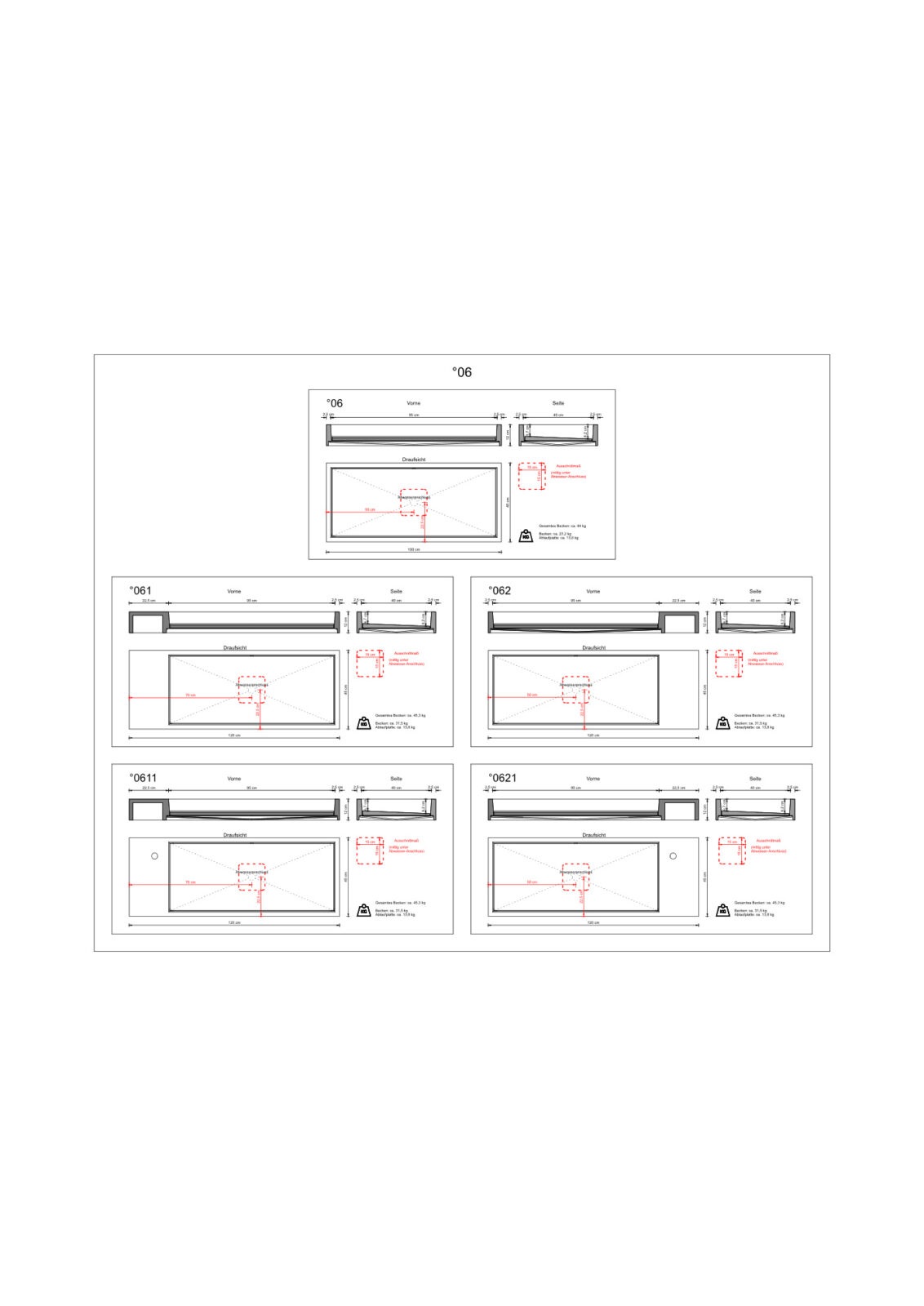 - Die Wandbefestigung ist von uns für eine freischwebende Montage vorbereitet (Befestigungspunkte in der Wandbefestigung). Je nach Wandaufbau muss das richtige Befestigungsmaterial beschafft werden (Schrauben, Gewindestangen, etc.).